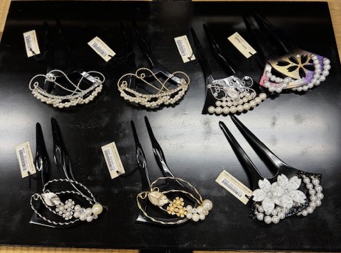 小物屋さんで髪飾り、帯締め、帯揚げなどを見てきまして
