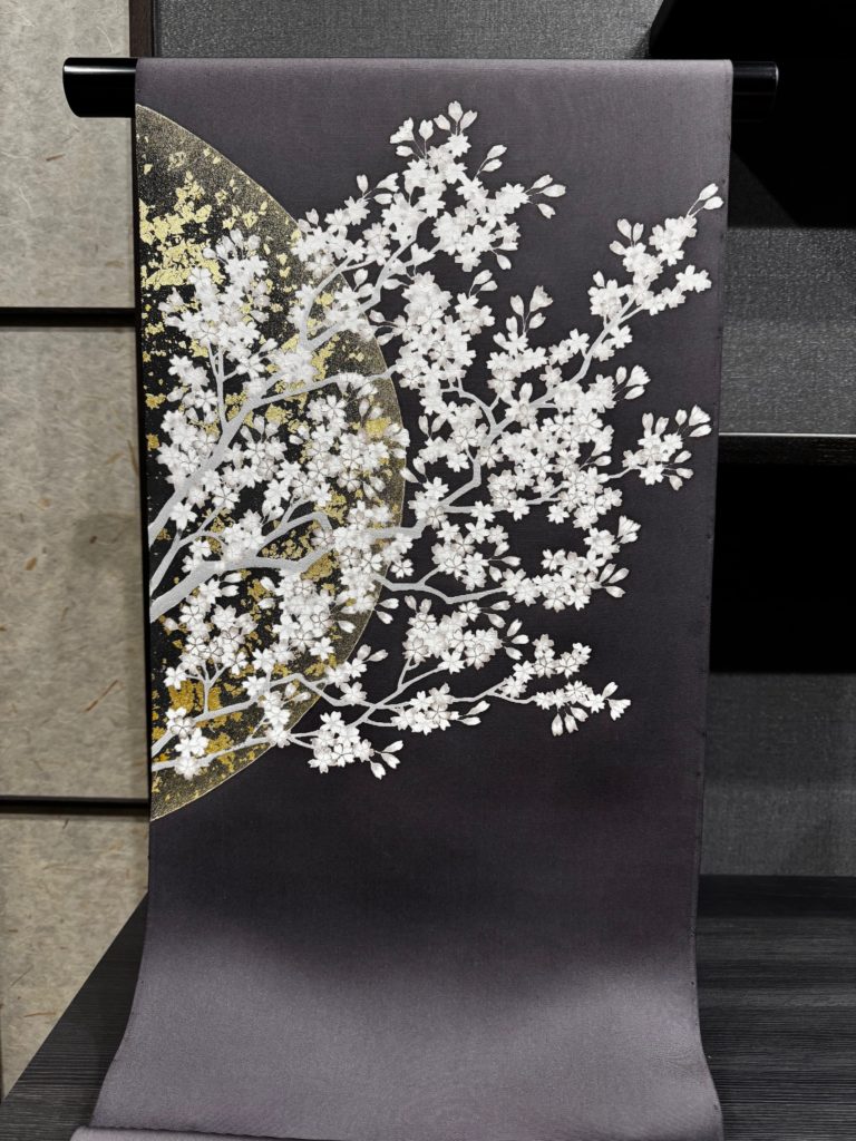 本日は成謙工房の「桜に半月」の染め名古屋帯をお選びいただきました。