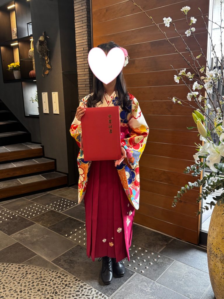 可愛い袴姿で、笑顔で卒業式に行かれました。