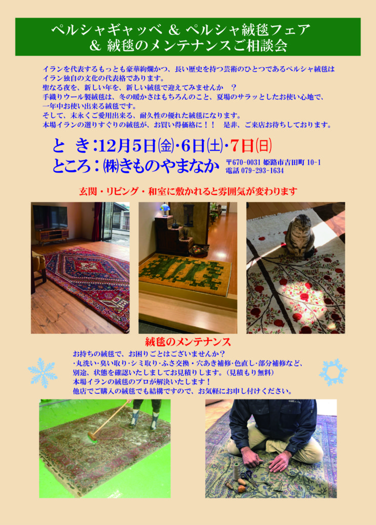 ギャッベ&ペルシャ絨毯フェアー開催します ~毎日きものやまなか~