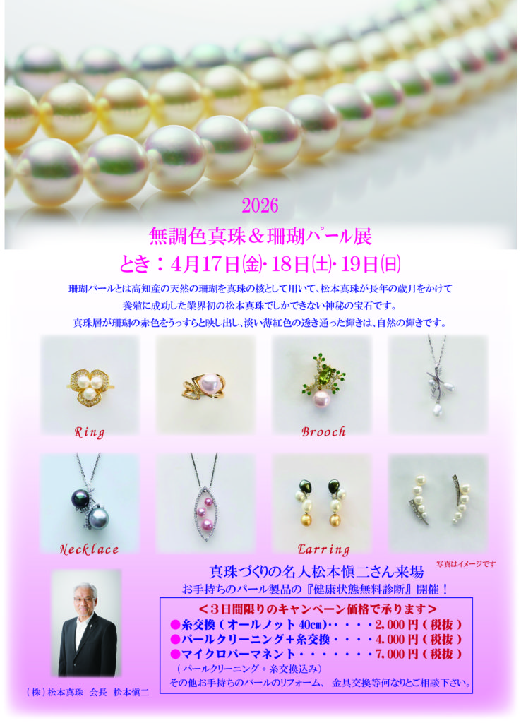 4月17日~19日まで「無調色真珠&珊瑚パールフェアー」開催します